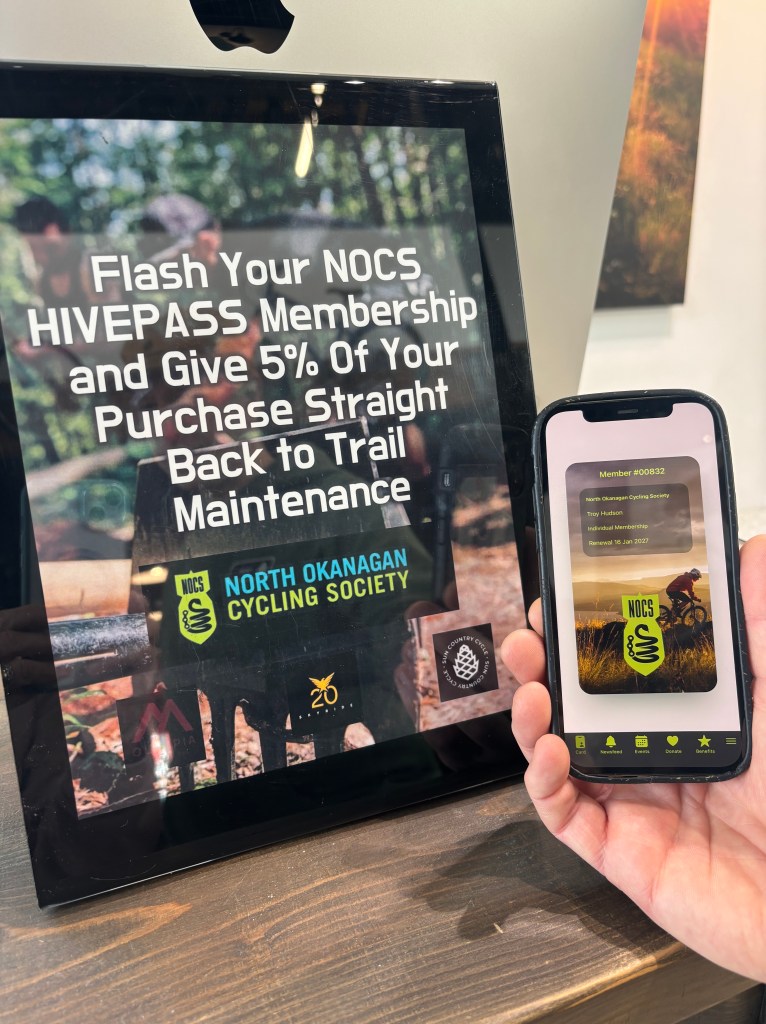 Members simply show their current NOCS membership in the Hive Pass app at checkout — every qualifying purchase becomes a direct investment in our trails.